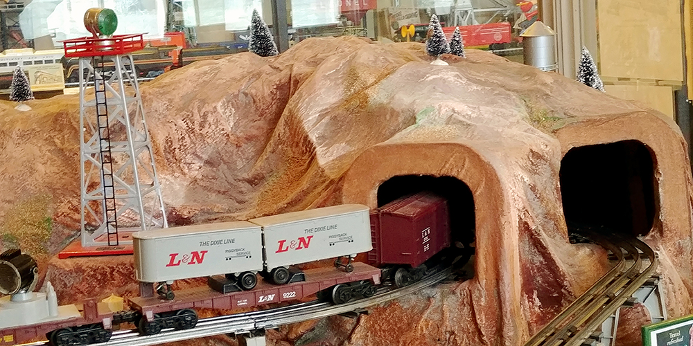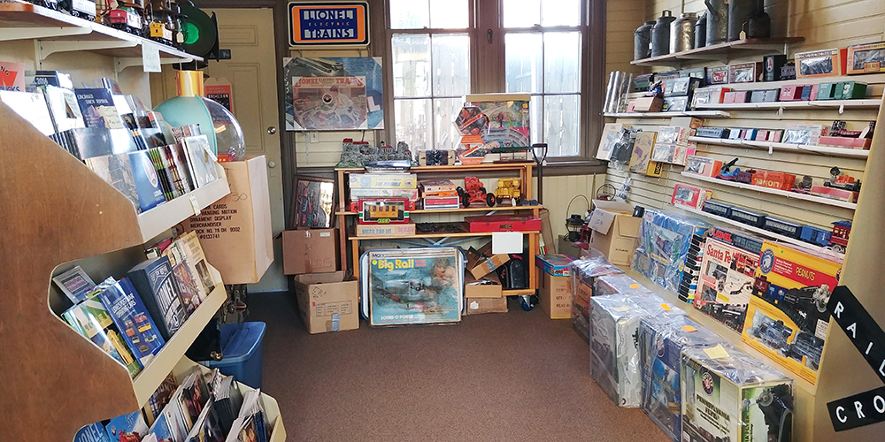 New and used Lionel Train sets and individual items are available in the shop along with track, switches and other accessories. Catalogs and train literature and other train related items are also available for purchase.